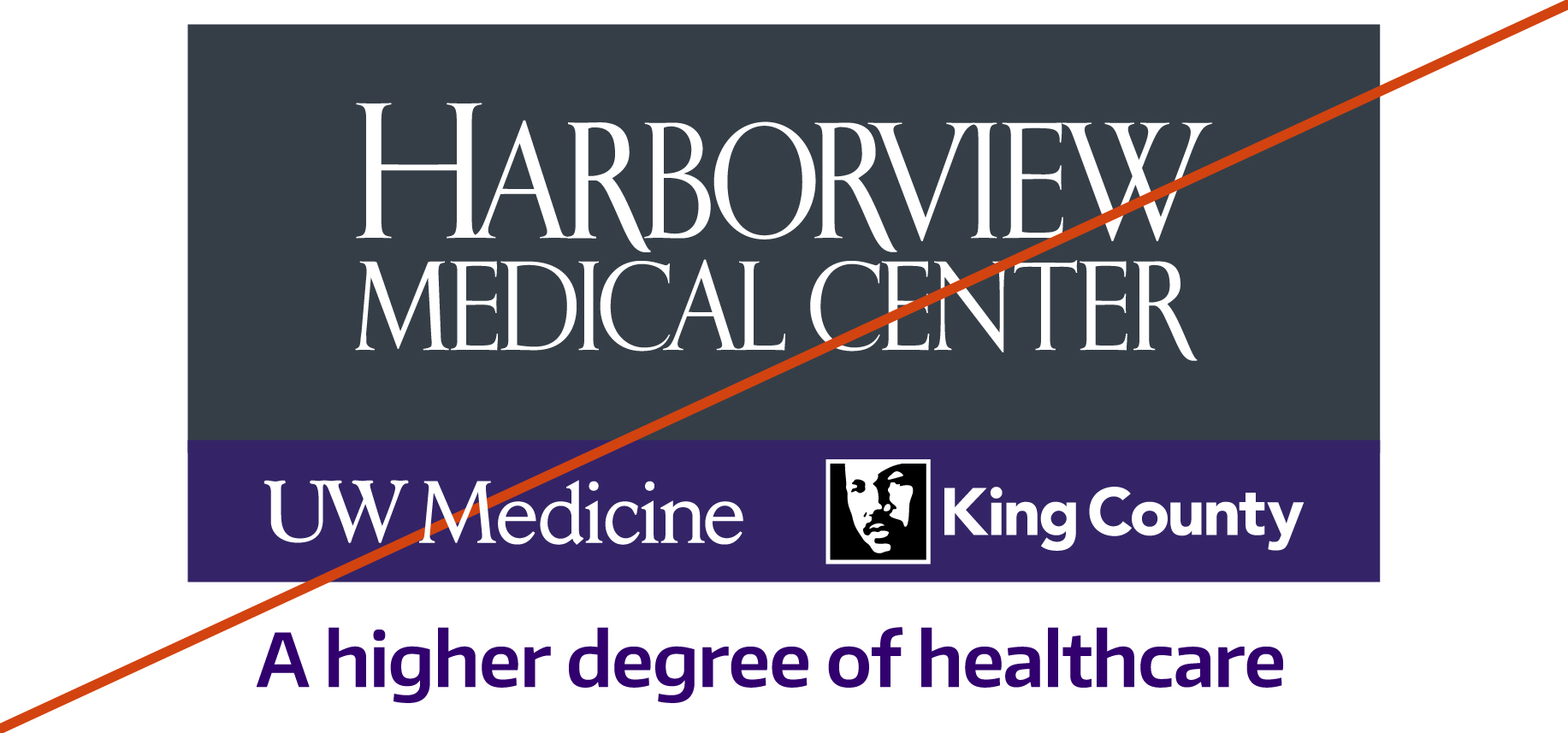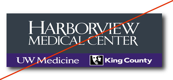 - Do not use the Harborview logo with overlapping UW Medicine logos, such as a generic UW Medicine/Harborview logo combination.