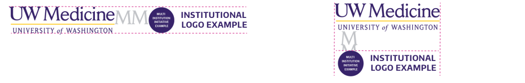 - When locked up with the UW Medicine Primary logo, use two M’s spaces between in horizontal applications and 1.5 M’s spaces between in vertical applications.