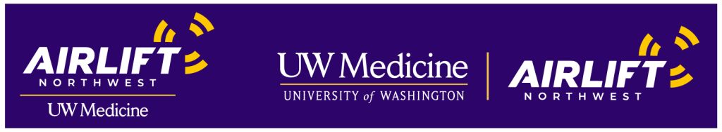 Airlift Northwest’s logo is designed to optimize brand recognition and better represent the exceptional care it provides to patients across the Pacific Northwest. Unlike other UW Medicine entities, the Airlift Northwest logo is not integrated into the UW Medicine secondary logo structure to serve its unique market needs.